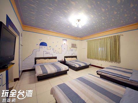 「綠島民宿-綠島微風民宿」的所有房間名稱,皆是以花名為主題;在客房部份的佈置與規劃,仍舊主張清爽舒適的簡單風格,採用相同的格局擺設及選用相同的床單花色,再搭配著俐落的寢俱組合,並於各個客房牆上,添加了紙貼及彩繪的活潑妝點;用同樣的設計想法,表現出一致性又和諧的空間佈局。在「綠島微風民宿」的部份房型裡,還有加入了星光主題彩繪的藝術設計,使原本單純的休憩環境,也能帶著您在黑暗中,去體驗身歷其境的感官刺激。