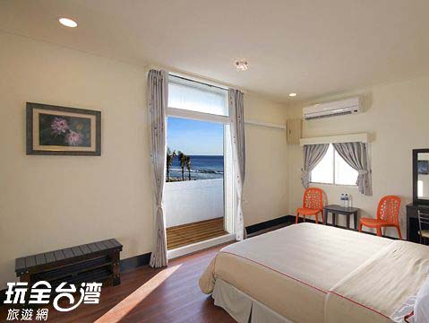 「綠島民宿‧法式小酒館」擁有二人及四人的套房房型,精緻簡約的浪漫房型,享有面海的美麗景緻,讓旅人隨時可徜徉於海洋的清新氛圍。民宿鄰近海邊,步行過馬路即可漫步海邊,享受築風踏浪的悠閒愜意;夜晚則可伴著海浪的拍打聲,緩緩入眠,小島的海洋風情盡現。此外,民宿頂樓視野寬闊的空曠露臺更是一大賣點。白日,一望無際的遼闊海景在陽光的照射下閃閃耀眼;夜幕時分的晚霞低垂及深夜的星空蔓延,每時每刻都有不同的迷人景緻。您可舒適的躺在主人貼心準備的躺椅上,享受火燒島的豔日,來場溫暖的日光浴;夜晚則可在此觀星賞月,渡過愜意迷人的舒適假期。