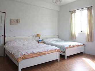 筆直的稻田小弄間,陽光輕灑,台東的湛藍天空住進水田秧苗的倒影裡,回頭,一棟漆白的屋子正在手拓的白色圍牆後頭,輕柔俏皮的召喚,女孩背著背包踩著輕快的步伐,踏過一片小小草原,和手作的木頭小羊問候,白色格子窗洩漏甜美的秘密,推開木門,歡迎有時回家。